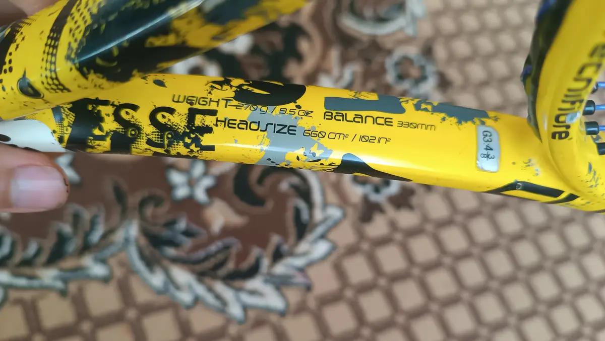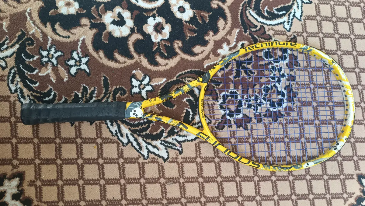 Тенісисна ракетка Tecnifibre у жовто-чорному кольорі з ситою сіткою, готова до гри. Використовується для професійної гри в теніс. Ціна чисто символічна, ракетка повістб справна, струни нові, кастомні, грати можна вона не була ремонтована чи ламана. Може бути віброгашувач за не велику плату на вибір.